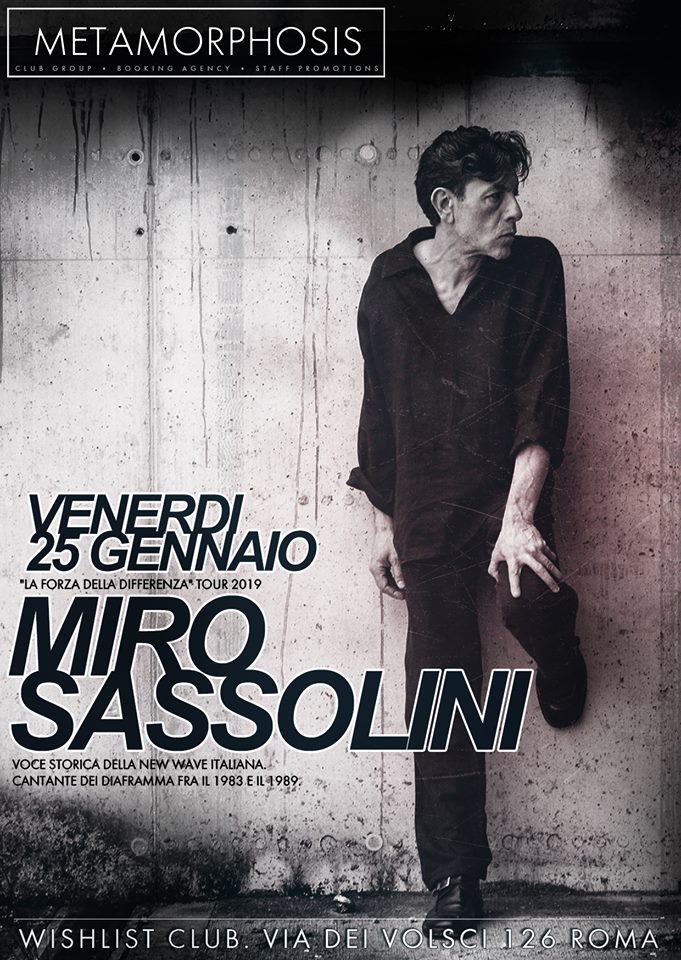 Venerdì 25 gennaio 2019 Metamorphosis Club e Wishlist Club presentano Miro Sassolini "La forza della differenza" Tour 2019 @ Wishlist Club, Via dei Volsci 126 B, 00185 Roma dalle ore 22:30 Un live minimale, elegante, lisergico: per chi ama perdersi, o trovarsi, nelle immagini della poesia di un’autrice di confine e nella potenza espressiva di una … Continua a leggere Miro Sassolini in concerto al Wishlist Club di Roma