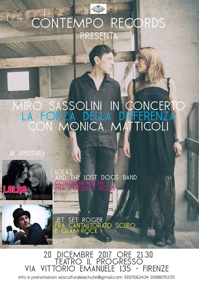 20 dicembre 2017 ore 21,30 Firenze, Circolo ARCI Il Progresso Contempo Records e La Chute presentano il ritorno a Firenze del cantante MIRO SASSOLINI, voce storica della new-wave italiana, melodista e sperimentatore vocale. Insieme a MONICA MATTICOLI, autrice, performer e poeta, Miro Sassolini ripercorre gli ultimi otto anni di ricerca ai confini fra musica, canto e poesia in un’emozionante … Continua a leggere La forza della differenza: live a Firenze